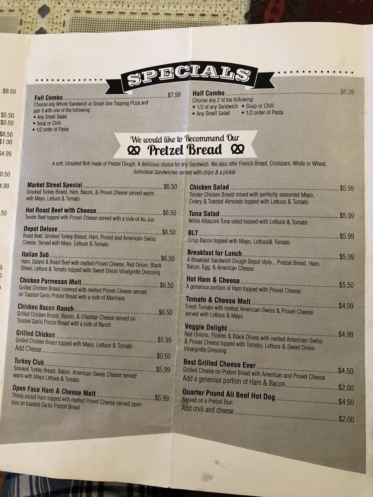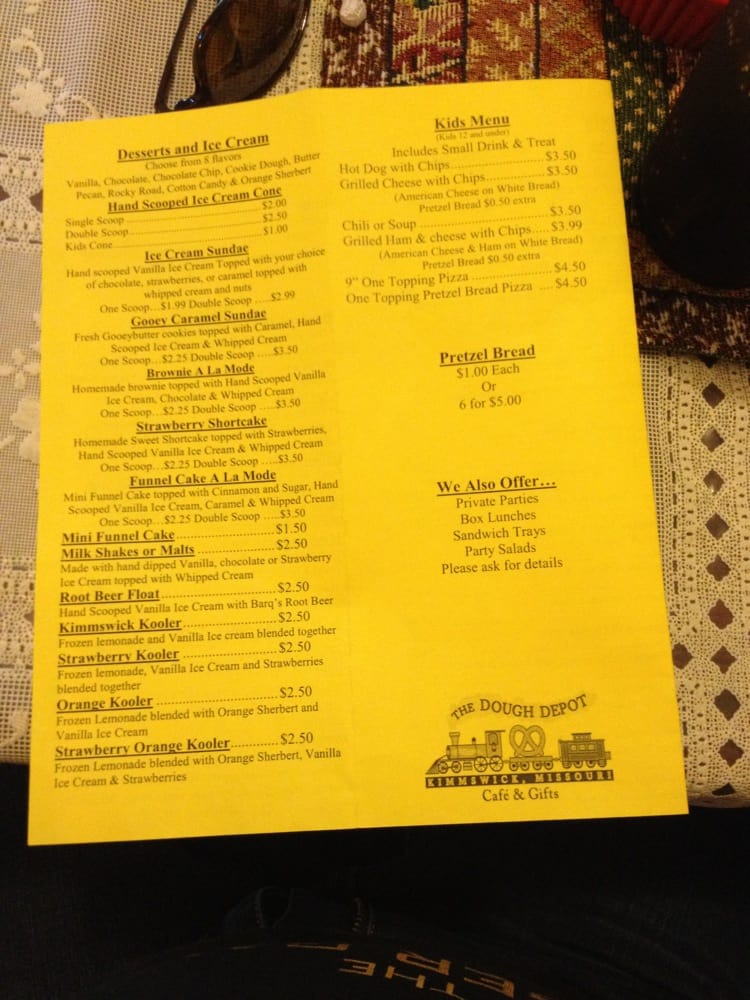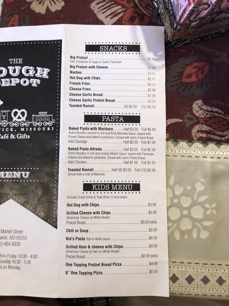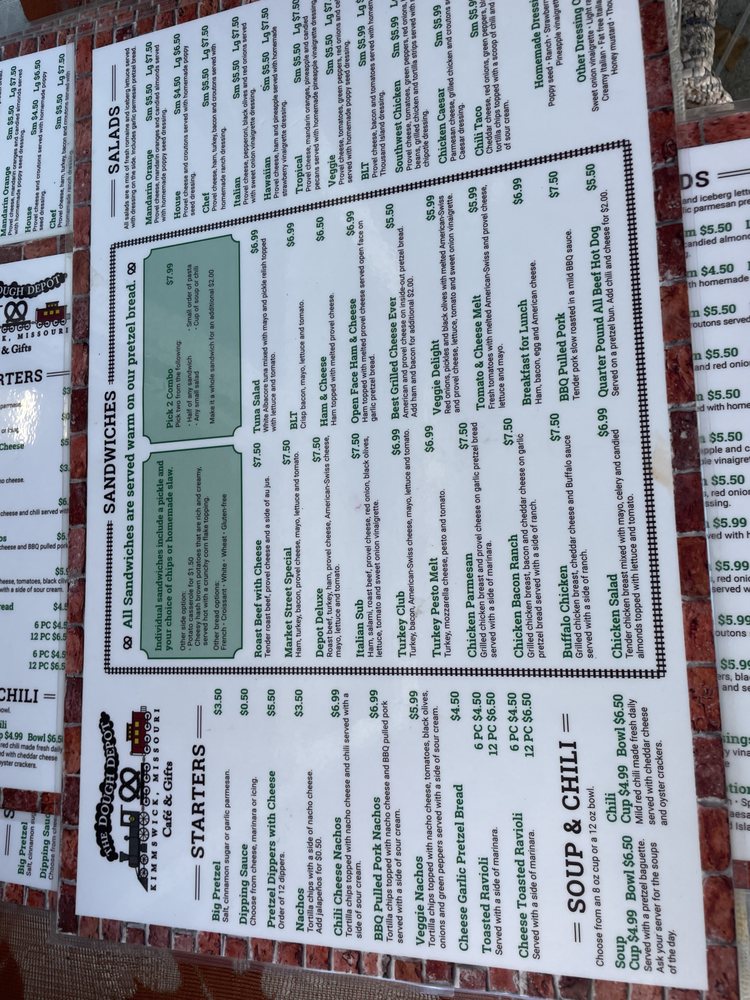 Dough Depot in Kimmswick, MO is a cafe offering a variety of options like salads, baked pasta, and pizzas, all served on their signature pretzel bread. The atmosphere is casual, perfect for families and groups. Customers rave about the pretzel bun sandwiches, particularly the French Dip and chicken parm on garlic pretzel bun. The menu also includes delicious options like the mandarin orange salad and homemade poppy seed dressing. With excellent service and fair prices, Dough Depot is a hidden gem worth visiting. Outdoor seating and a cute train decor theme add to the charm of this quaint restaurant. Customers also praise the fresh ingredients used and the convenience of making reservations during busy lunch hours. Don't miss out on the unique dining experience at Dough Depot for a hearty and satisfying meal.